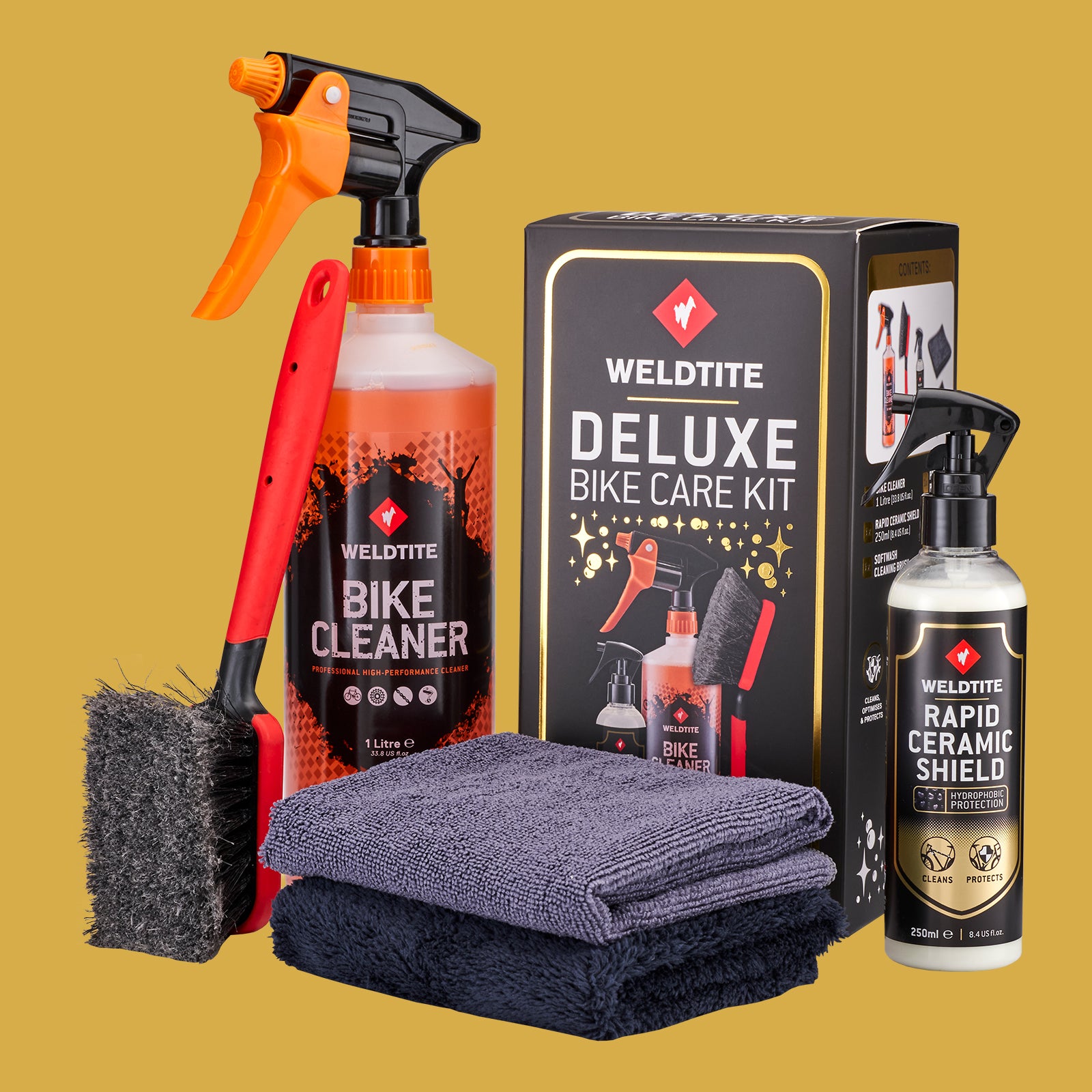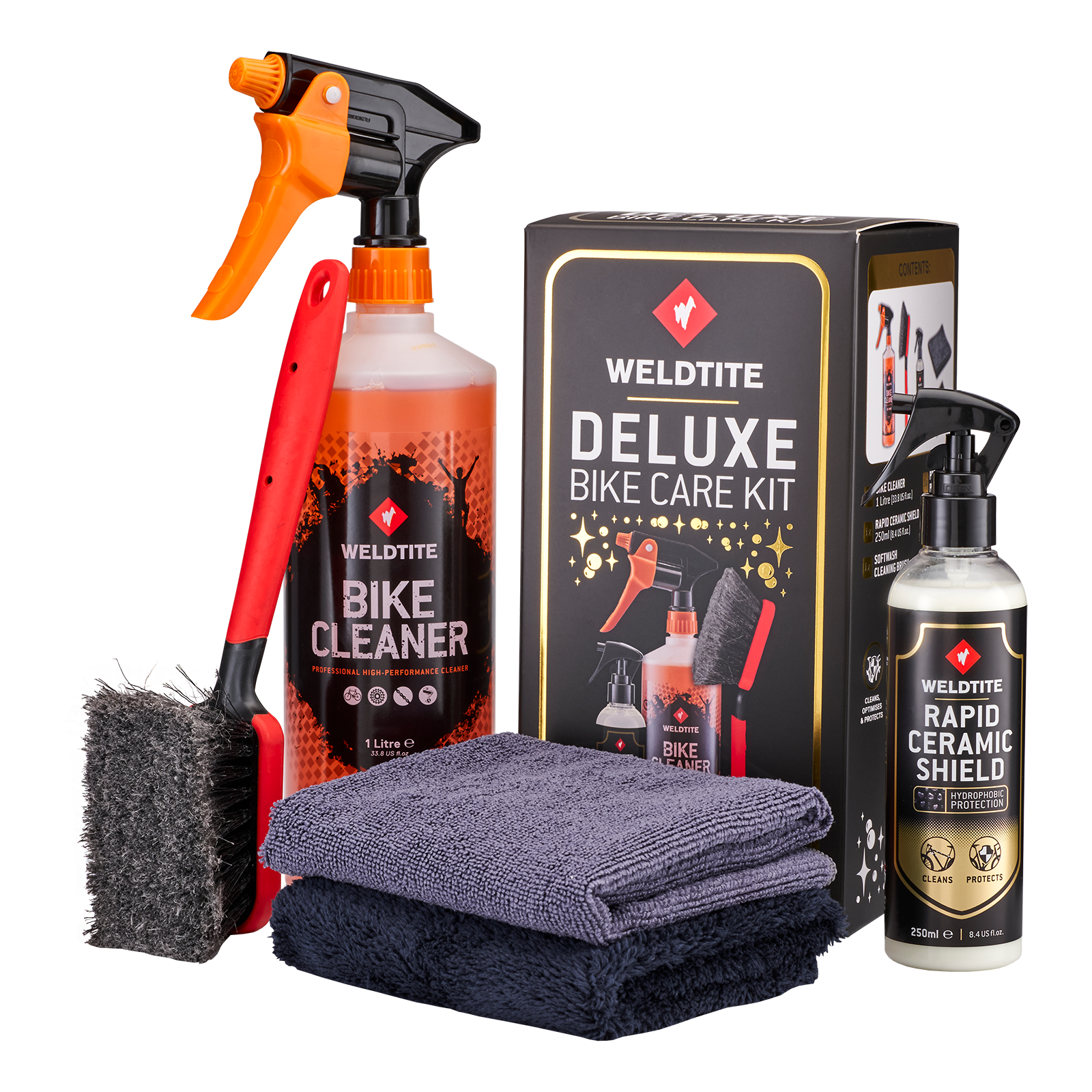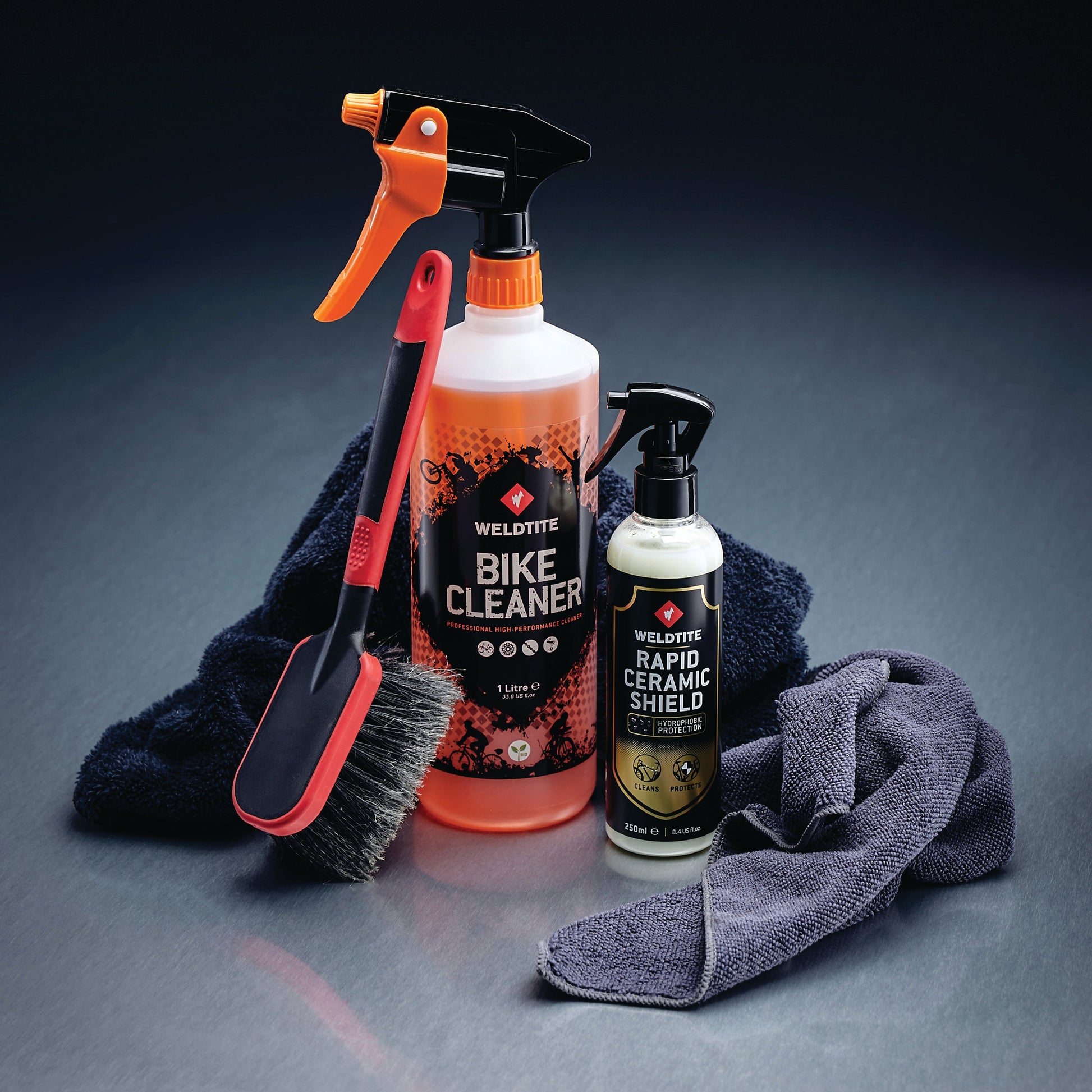 The premium kit for keeping your pride and joy fresh! Clean with Weldtite Bike Cleaner, using the soft wash brush before pampering with Rapid Ceramic Shield for a maximum protection and a hydrophobic finish.