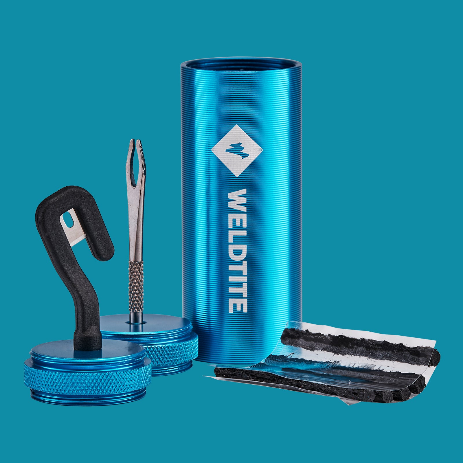 Designed to pack light while including all the tools required when the hole is a little too big for the sealant to repair.