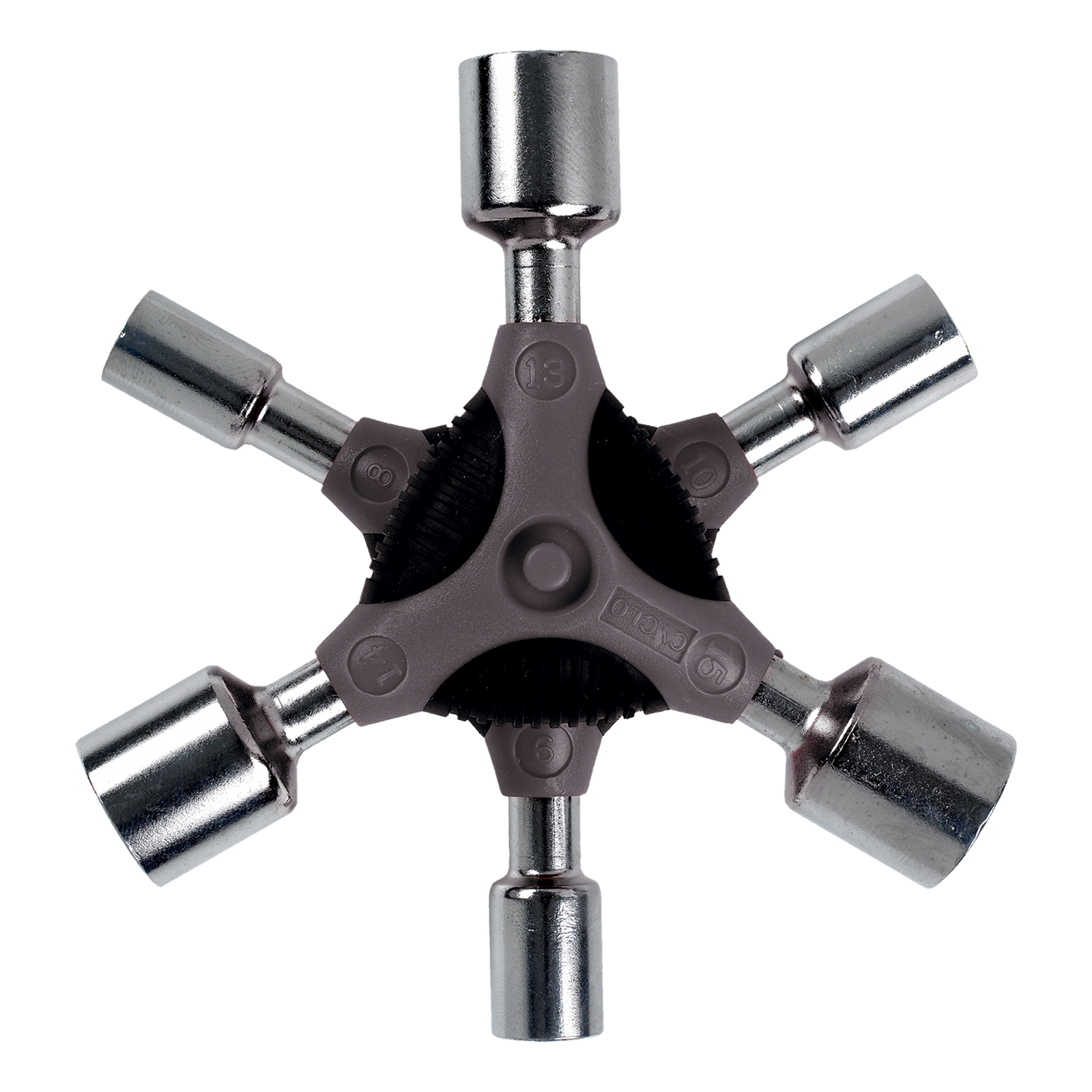Comfortable dual moulded Y wrenches with six nickel plated socket sizes (8, 9, 10, 13, 14 & 15mm) included in the three tips.
